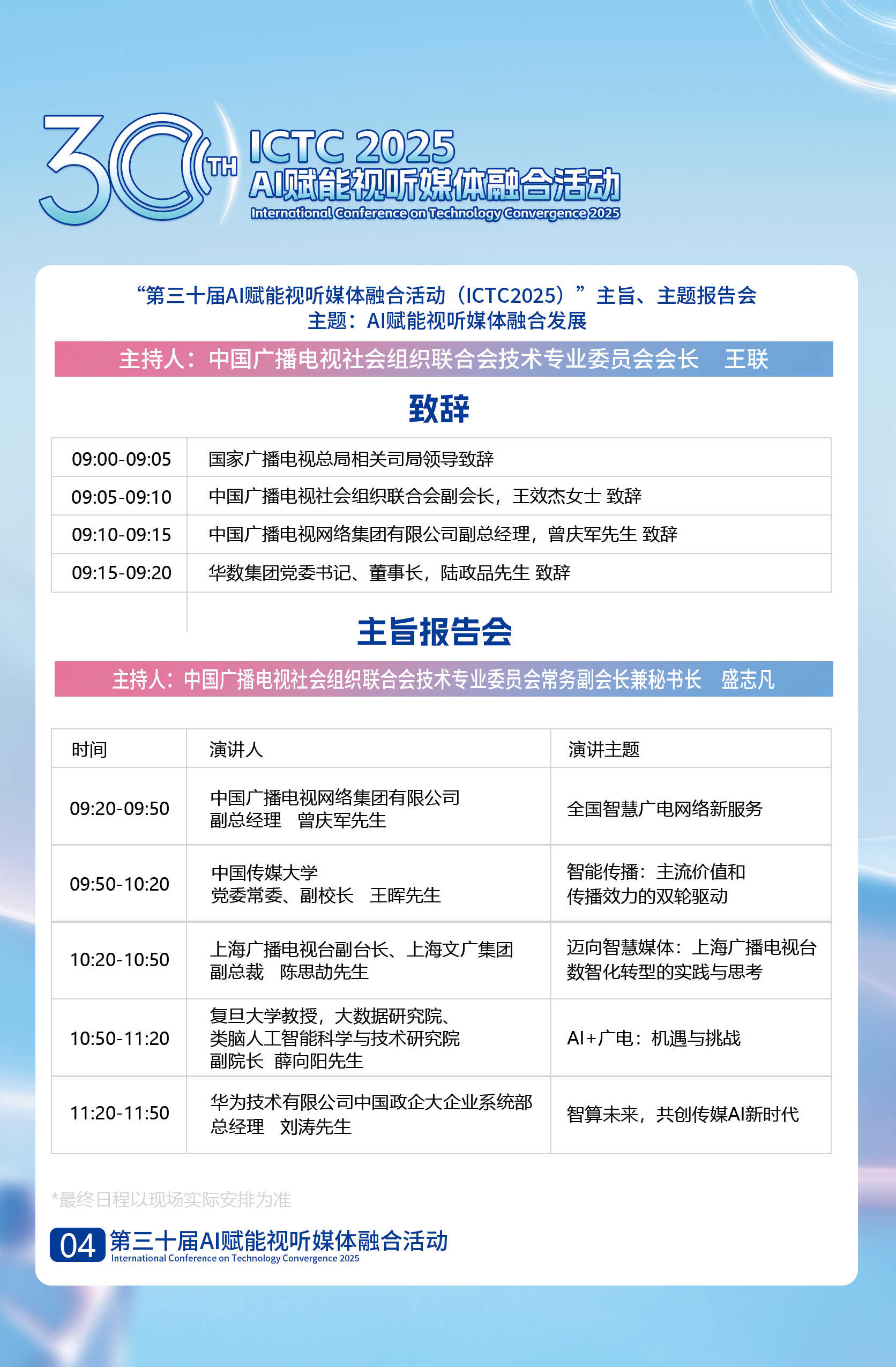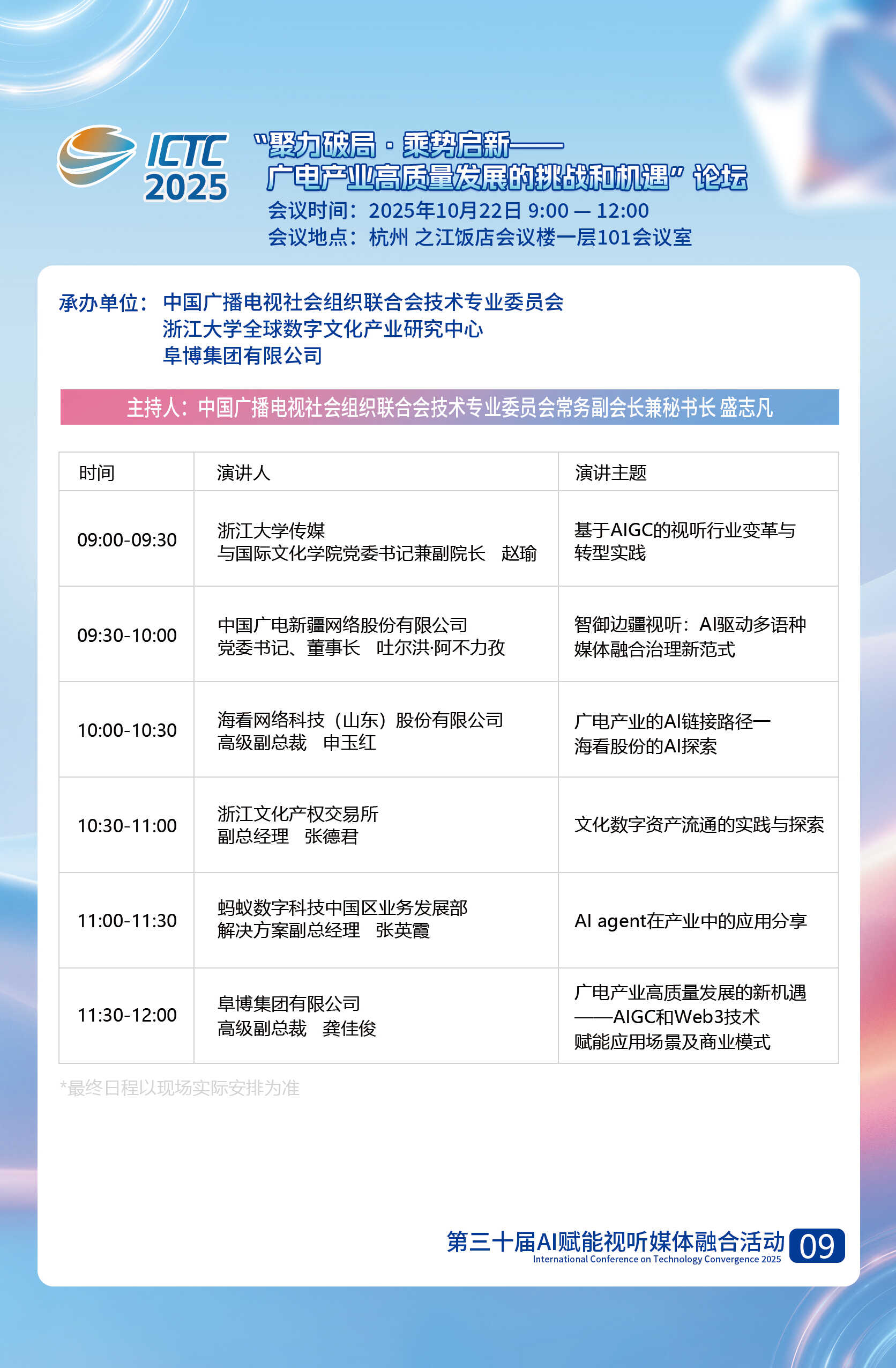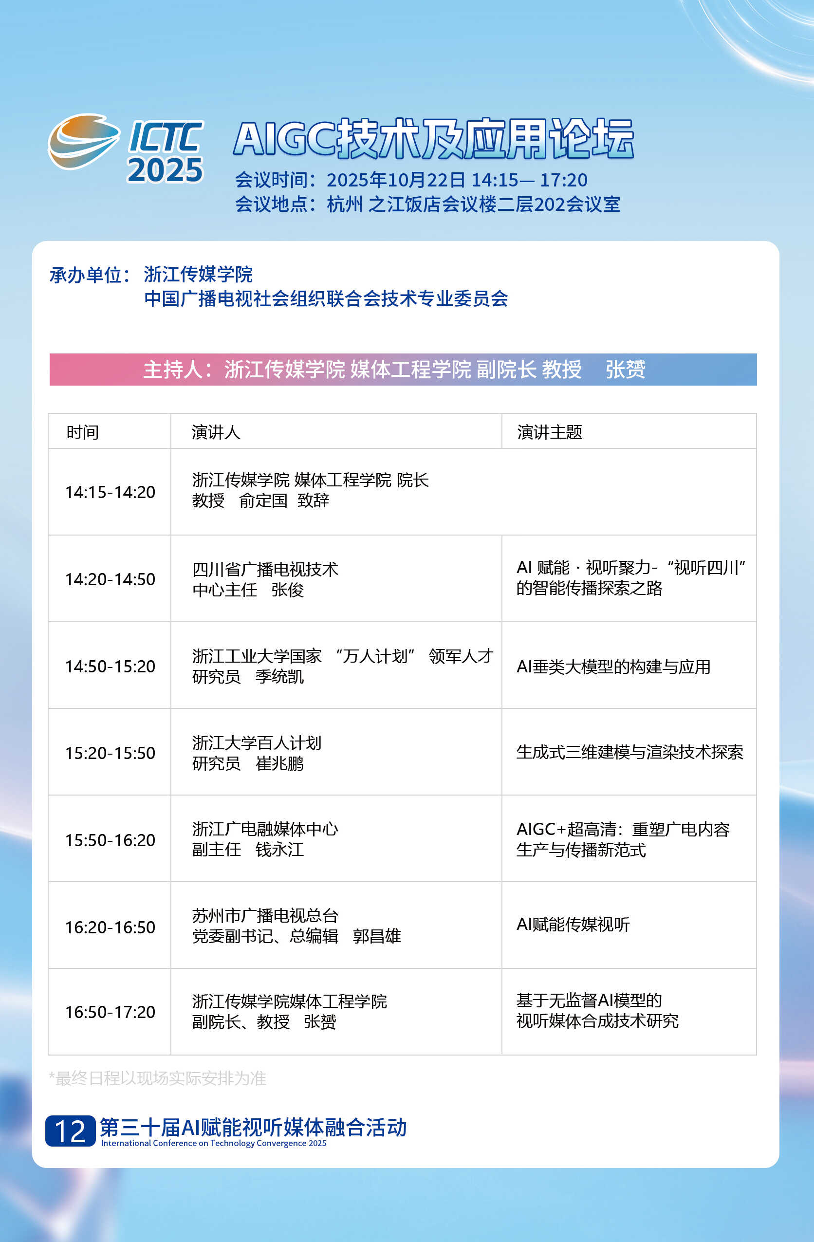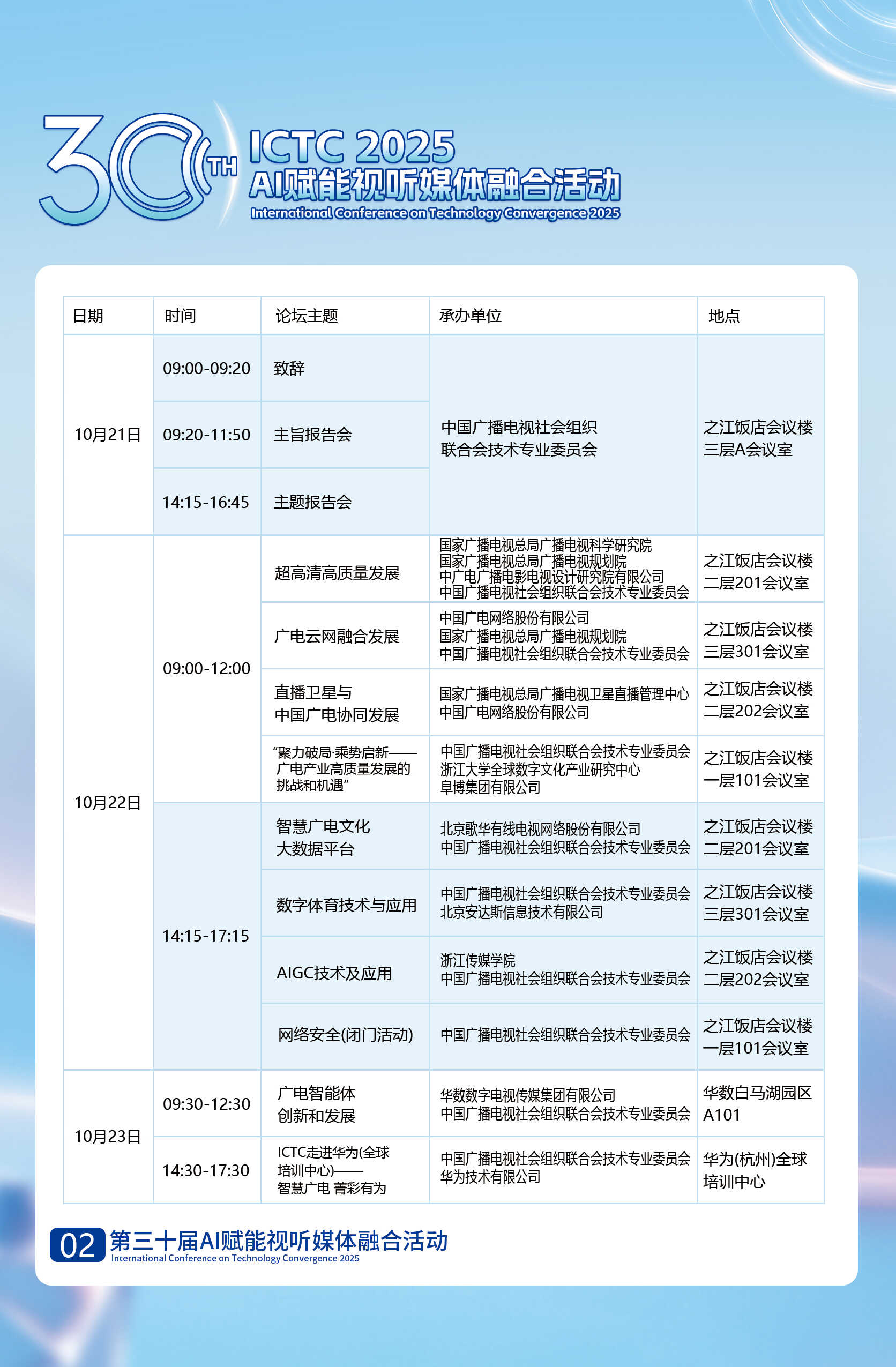 第三十届AI赋能视听媒体融合活动(ICTC2025)日程