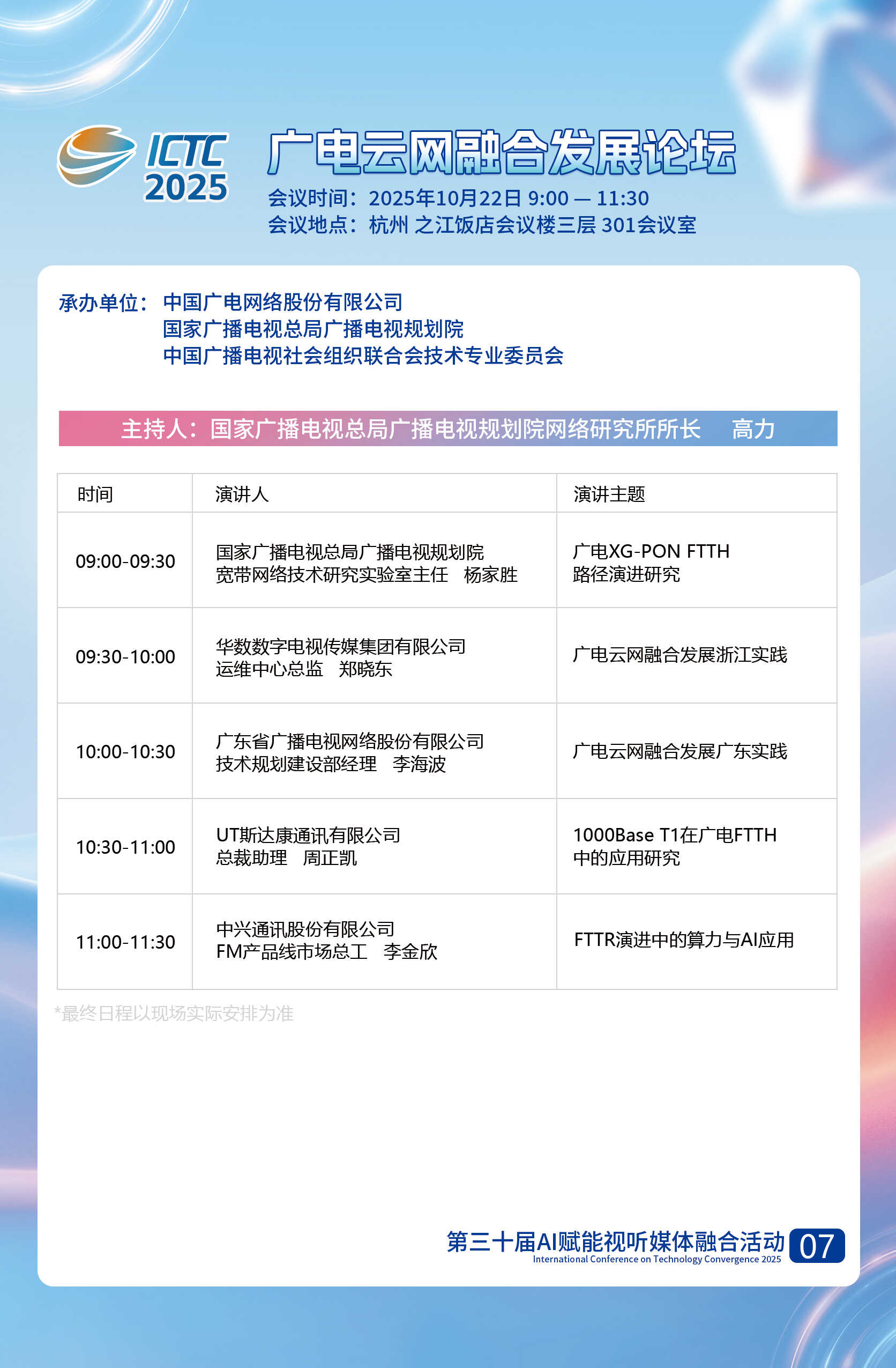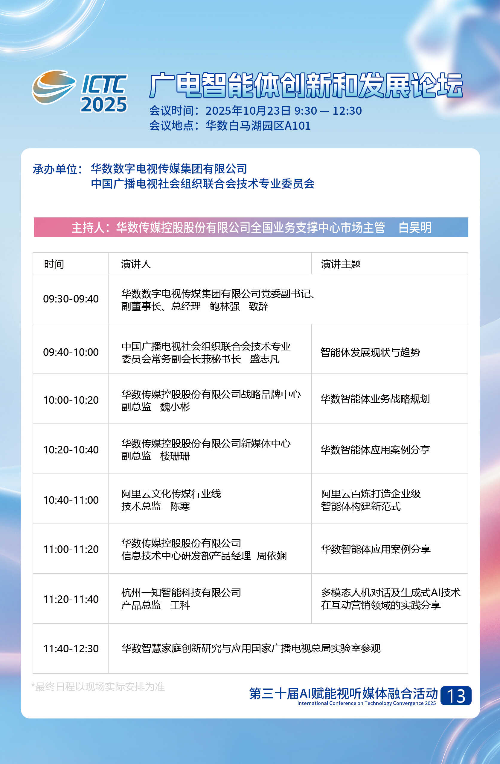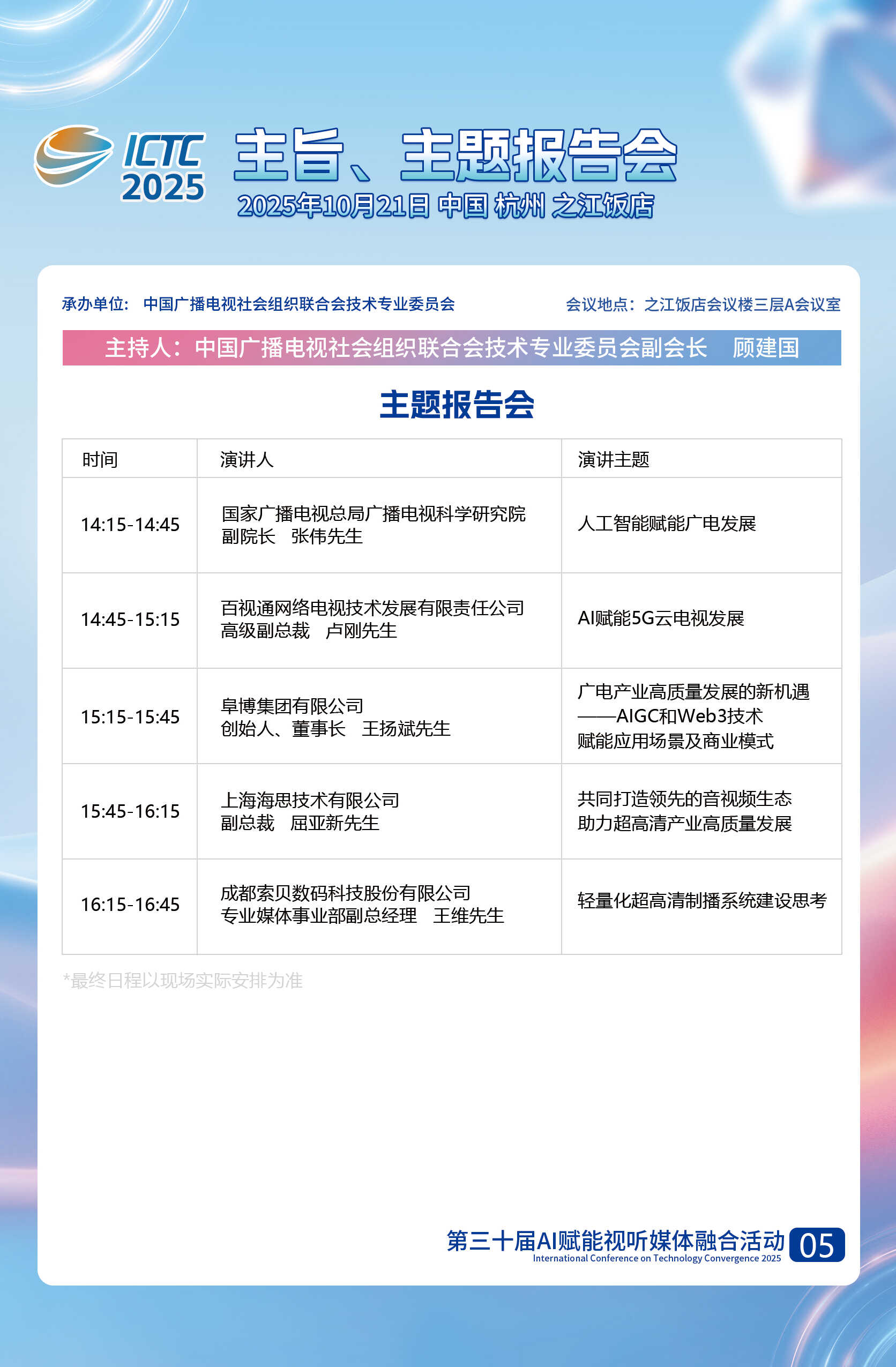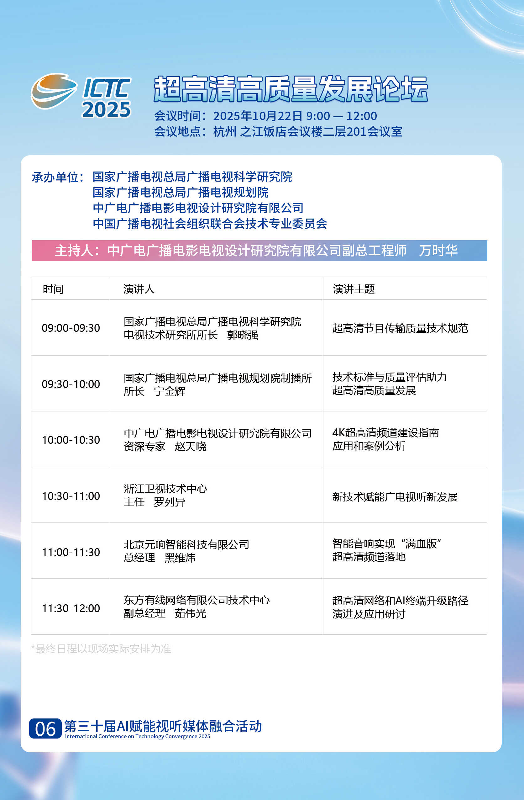 第三十届AI赋能视听媒体融合活动(ICTC2025)日程