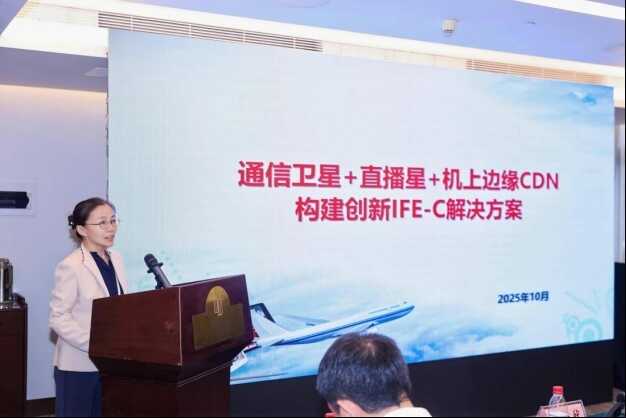南斗星联(北京)航空技术有限公司副总裁赵晋卿重点介绍了基于高低轨通信卫星与空中CDN的创新空中IFC解决方案。他提出,直播星大波束覆盖全国,同时为每架飞机提供高达100-400Mbps 匀速带宽的实时内容推送,大幅降低流量成本。此外,广电卫星空中CDN不仅构建了多元化的商业盈利模式,还与内容方开展了合作试点,进一步测试验证创新方案。