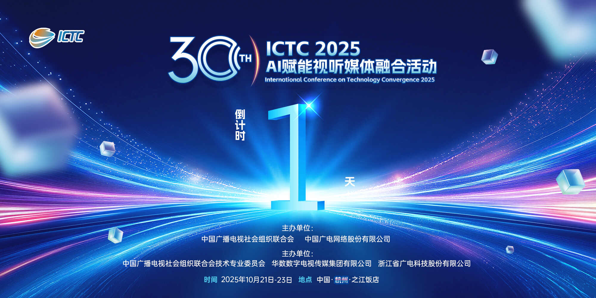 为加快推动广播电视网络视听高质量发展,探索"AI+广电"协同发展新生态,“媒体融合技术研讨会”更名为“AI赋能视听媒体融合活动”(ICTC)。“第三十届AI赋能视听媒体融合活动”(ICTC2025)定于2025年10月21日-23日在杭州之江饭店举办。本届活动将以“人工智能”和“超高清”为核心议题,紧密围绕总局的重点工作及行业发展热点,就“人工智能、超高清、新型广电网络、广电5G业务、智能电视终端、公共服务与应急广播、视听大数据、融合媒体制播云平台、智慧广电、物联网、网络视听安全与监管”等议题进行研讨和演示。活动将邀请总局、总台相关领导、广播电视科研机构、内容制作机构、播出机构、传输机构、厂商专家到会发表讲演。
